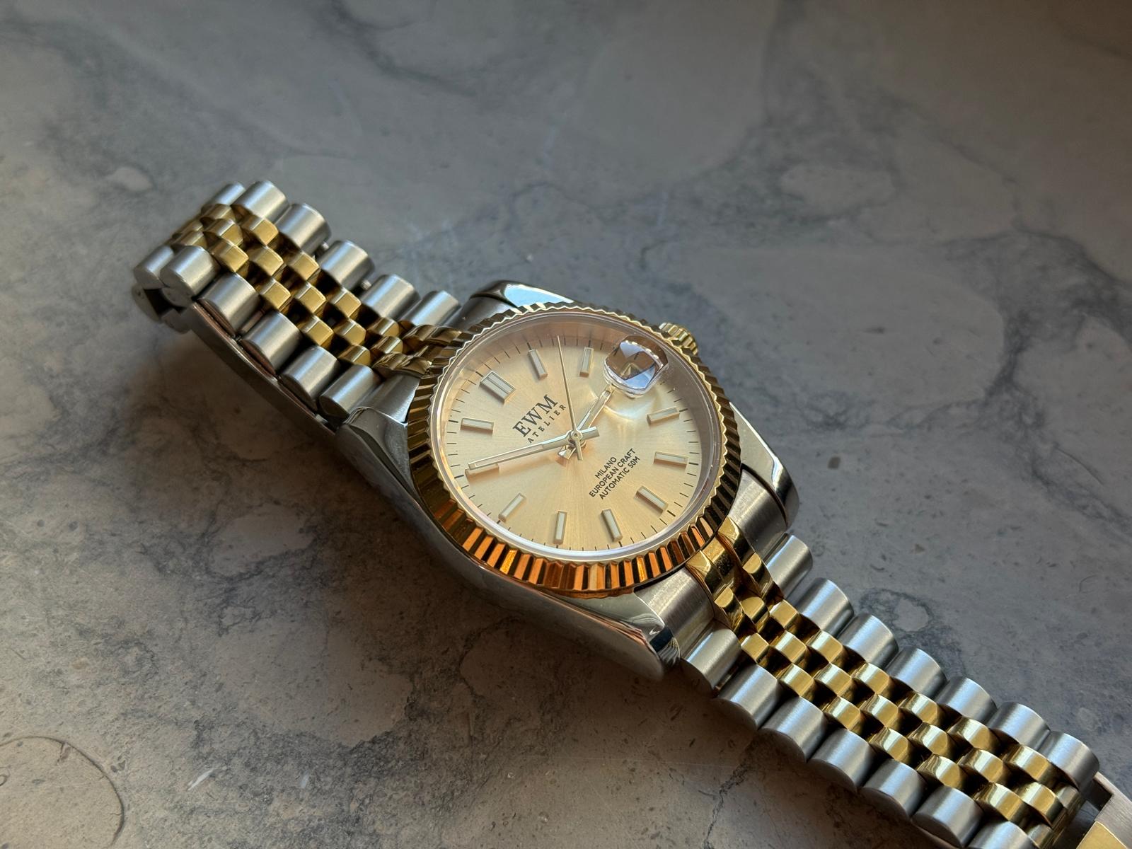 Our reimagined two-tone is built around contrast, where steel and gold are brought together with a sharper, more deliberate balance than the traditional approach.